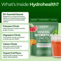 Hydrohealth’s blend delivers magnesium, calcium, potassium, and over 80 trace minerals that help: