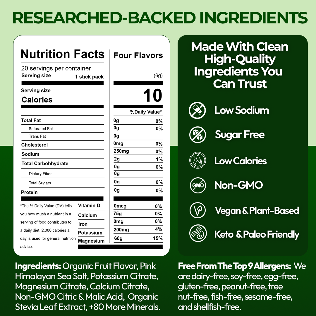 Clean, research-backed ingredients delivered at the perfect ratio for all-day hydration and energy.