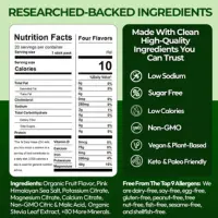Salt (Sodium Chloride), Malic Acid, Magnesium Malate, Potassium Chloride, Natural Raspberry, Lemon Lime, Raspberry Orange, Watermelon Flavors, Stevia Leaf Extract, 80+ More Minerals.