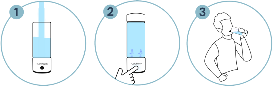 - DRINK: Once the blue light turns off, your hydrogen water is ready to drink!